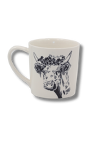 This large mug will get you ready for breakfast time!! The sweet face on this heifer (a female that hasn't had a baby) is sure to please all the farm, ranch, and Southern lovers in your family. The Southern flowers that make up her crown can be seen again in our Over Yonder designs. Now on our NEW mugs!