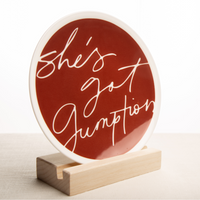 This BOLDLY handwritten statement not only looks great on the table, it looks awesome on your kitchen wall. She's Got Gumption encompasses all the women who are spunky and bold. Know someone like that??