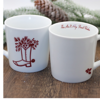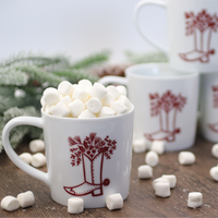 This large mug will get you ready for Christmas festivities!! Serve up warm apple cider, yummy hot chocolate, or a good cup of morning coffee, this mug is ready to go!! Santa's cute boot is featured on the front and the best part is saved for the inside as you sip!!