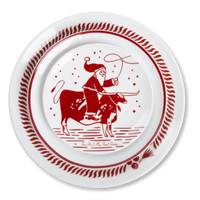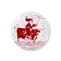 Santa is riding my Mom's longhorn named "Baby Cakes" in this fun illustration. Santa is more than prepared to handle Christmas in style this season. These canapé plates are the perfect size for Southern celebrations with friends and family!