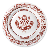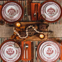 The Indian Firewheel and other familiar Southern flowers (found in our other designs) rim the outside of this dinner plate in a gorgeous baked clay color. Pairs well with our midnight blue dishes and looks beautiful on a Fall or Spring table.